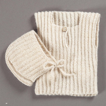 Her er opskrifter på strikkede bukser, små veste, sokker og savlesmæk, en lille jakke med lomme og den yndigste kjole.