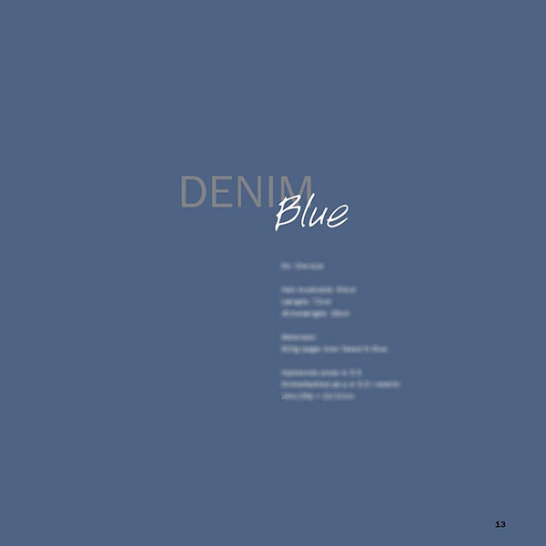 Susie viderefører sin sikre stil fra GREY DAYS – nu i blå nuancer. Opskrifterne er gennemarbejdede, designet som vi kender det fra Susie - meget enkelt og rent i udtrykket.