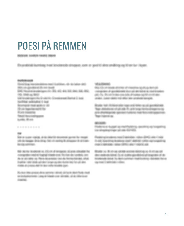 Designerne har smidt deres bedste designs, bunker af teknikker, fif og viden i en fælles pose, rystet den godt og kombineret det hele på den lækreste måde. Resultatet er blevet en delikat strikke-, hækle- og broderibog, fyldt med modeller både til den garvede og til begynderen.