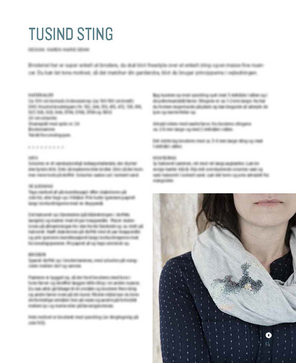 Bogen indeholder 16 hæklede og strikkede modeller, 4 broderede tasker og punge, et broderet tørklæde samt broderi på både strik og stof. Det hele til kvinder.