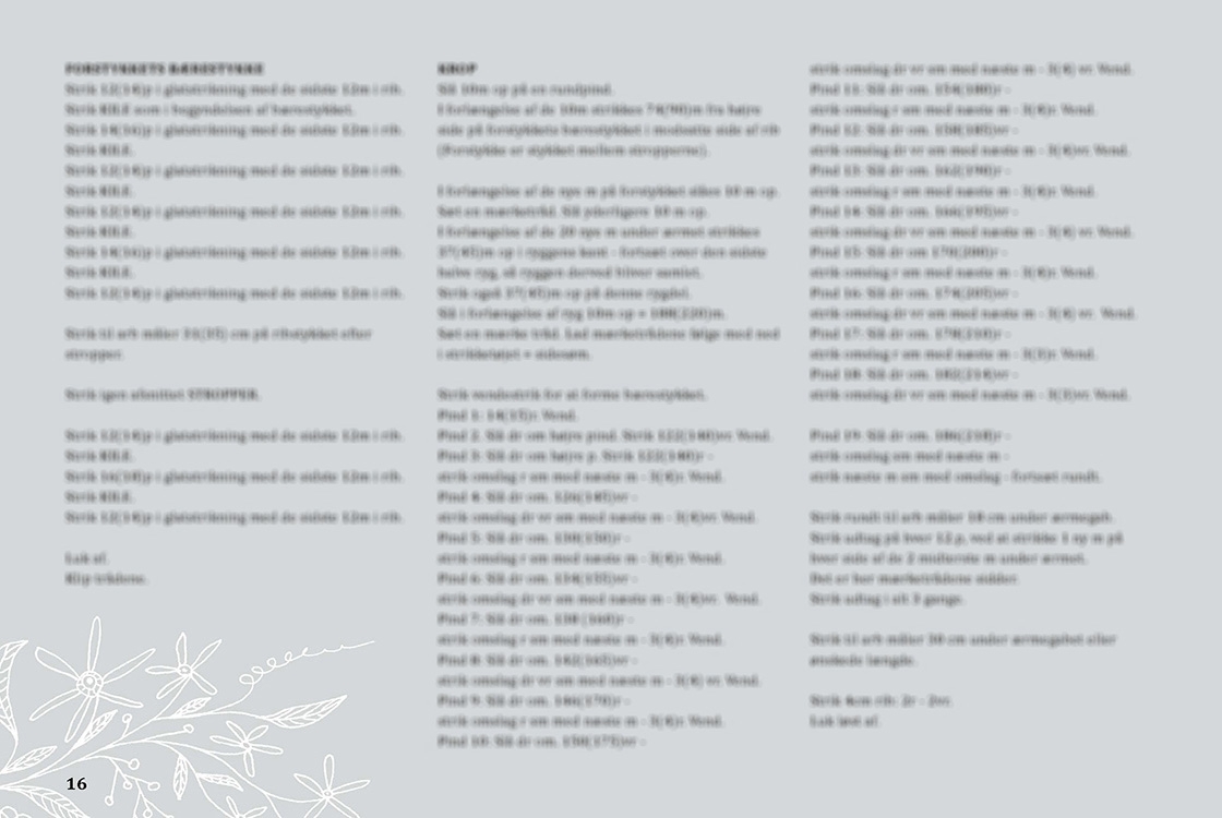 Denne gang er det den bløde, lette Silk Mohair, der er det gennemgående garn. Selv om Silk Mohair er rigtig fint i sig selv, har vi her valgt at strikke det sammen med andre Isager garner. På denne måde kan vi komme op på tykkere pinde, give garnet mere luft og få mere struktur i vores mønstre. De garner vi har brugt at strikke sammen med er Isager Alpaca 1, Viscolin, Highland og Tvinni. Silk Mohair er et lækkert garn at arbejde med. Det giver en feminin og interessant overflade som egner sig til mange forskellige strikketeknikker.