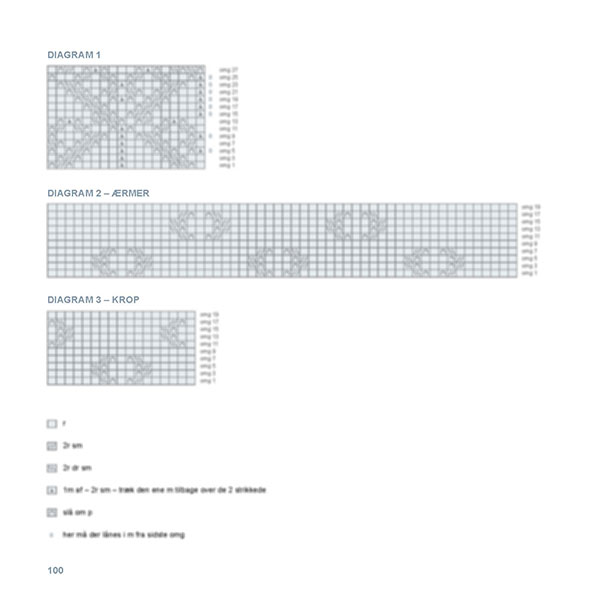 Farverne blå, hvid, grå og brun er gennemgående og tegner helheden i strikkebogen.