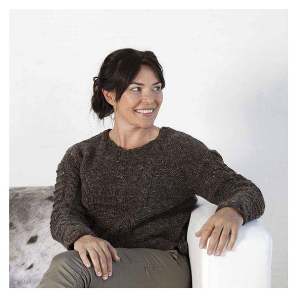 Farverne blå, hvid, grå og brun er gennemgående og tegner helheden i strikkebogen.
