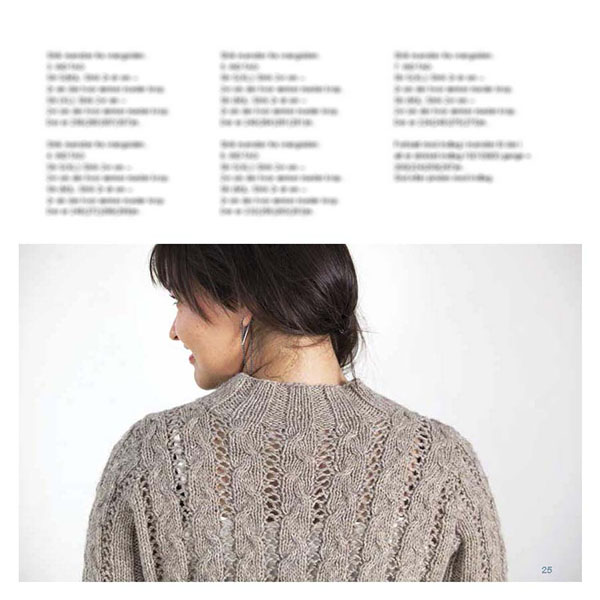 Farverne blå, hvid, grå og brun er gennemgående og tegner helheden i strikkebogen.