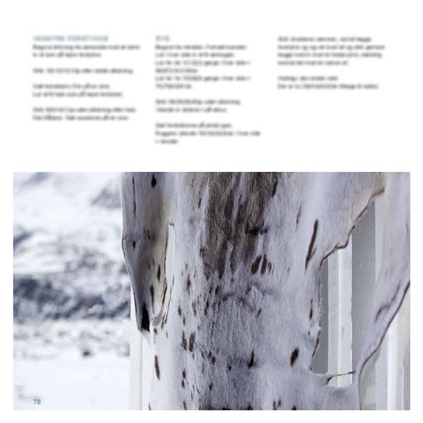 Farverne blå, hvid, grå og brun er gennemgående og tegner helheden i strikkebogen.