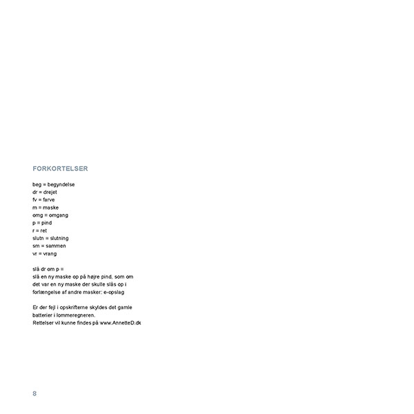 Farverne blå, hvid, grå og brun er gennemgående og tegner helheden i strikkebogen.