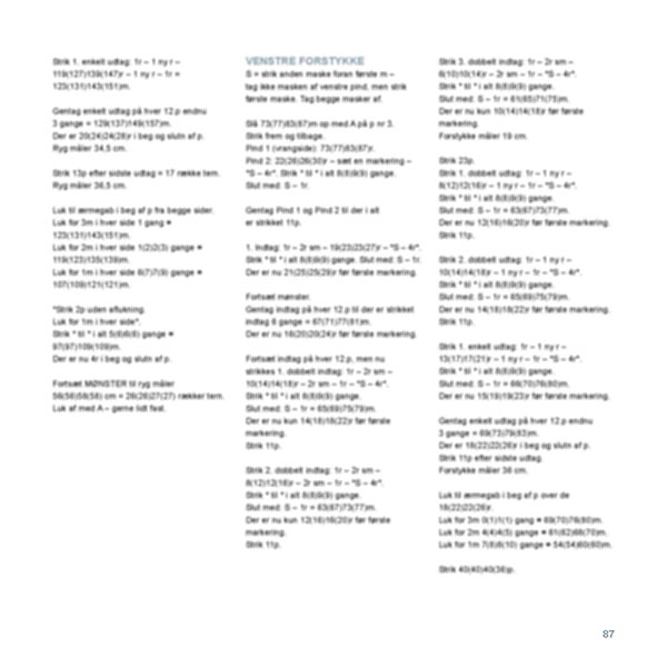 Farverne blå, hvid, grå og brun er gennemgående og tegner helheden i strikkebogen.