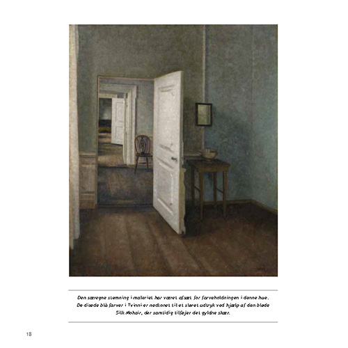 Hæftets modeller har fundet inspiration i Wilhelm Hammershøis malerier og i broderen, Svend Hammershøis, keramik. Resultatet er et strikkehæfte, som trækker klare linjer til det tidløse og enkle Hammershøiske univers. Ditte Larsen har gennem mere end 40 år været en markant del af den danske strikkeverden. Måske mest kendt som grundlægger af butikken Sommerfuglen på Vandkunsten. Men også som designer og arrangør af forskellige strikkeevents har Ditte Larsen gjort sig bemærket.