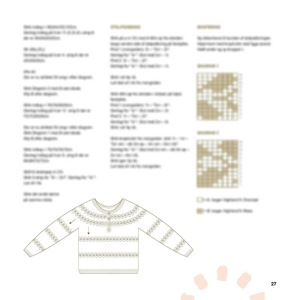 Annette har arbejdet videre med Kviums farver og motiver. Overført det til strikketeknikker, garnfarver og detaljer, der passer ind i Annettes eget design-univers.