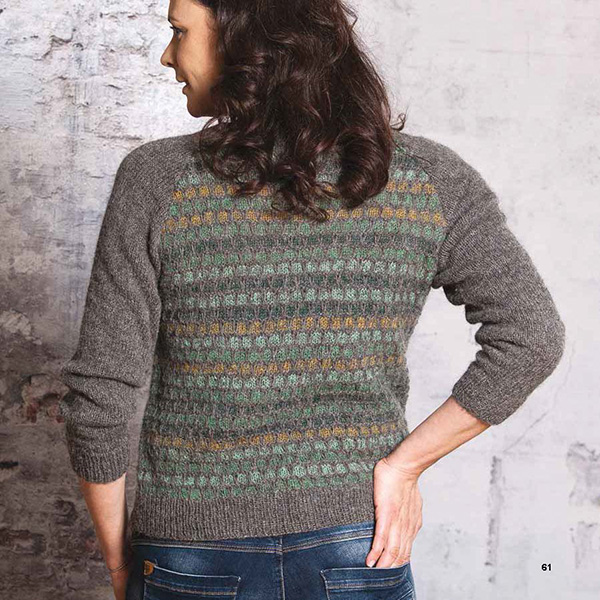 Annette har arbejdet videre med Kviums farver og motiver. Overført det til strikketeknikker, garnfarver og detaljer, der passer ind i Annettes eget design-univers.