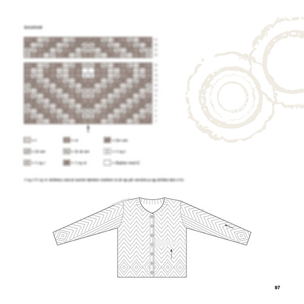 Annette har arbejdet videre med Kviums farver og motiver. Overført det til strikketeknikker, garnfarver og detaljer, der passer ind i Annettes eget design-univers.