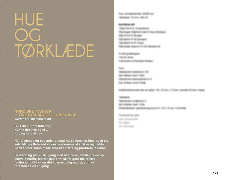 Og mange af maskerne er beskrevet af danske strikdesignere. Strikkebogen Mange Masker er et bredt udsnit af tidens strikdesign, udført af :