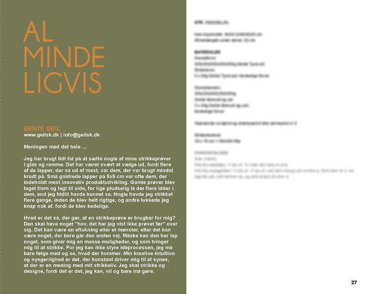 Og mange af maskerne er beskrevet af danske strikdesignere. Strikkebogen Mange Masker er et bredt udsnit af tidens strikdesign, udført af :