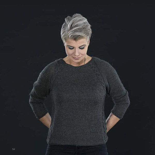 De strikketeknikker, der er anvendt, giver en overflade, hvor de mørke nuancer får lov at spille mod hinanden. Der er brugt strukturstrik, snoninger, vævestrik, men også simpel glatstrikning hvor det er ret og vrang der udgør mønsteret.