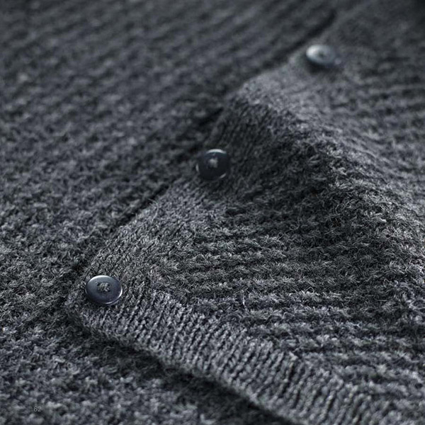 De strikketeknikker, der er anvendt, giver en overflade, hvor de mørke nuancer får lov at spille mod hinanden. Der er brugt strukturstrik, snoninger, vævestrik, men også simpel glatstrikning hvor det er ret og vrang der udgør mønsteret.