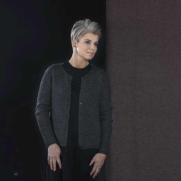 De strikketeknikker, der er anvendt, giver en overflade, hvor de mørke nuancer får lov at spille mod hinanden. Der er brugt strukturstrik, snoninger, vævestrik, men også simpel glatstrikning hvor det er ret og vrang der udgør mønsteret.