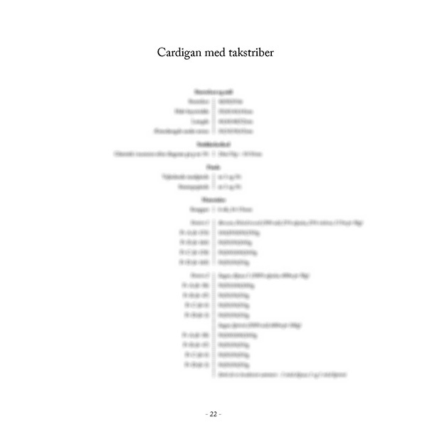 Anne har arbejdet i fire forskellige garner fra henholdsvis Filcolana, Isager garn, Rowan og Sandnes garn. Alle designs er vist i mindst to forskellige garner og farveversioner for at vise, hvordan udtrykket kan varieres.
