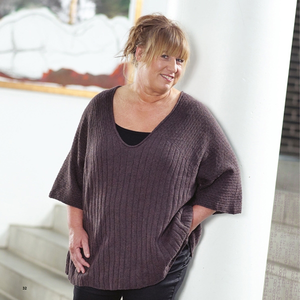STRIK I STOR STIL er en strikkebog med 11 opskrifter til kvinder fra str 44 til str 54.