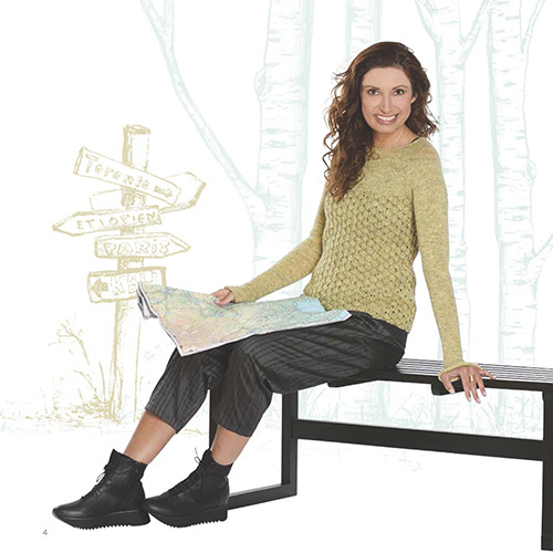 Strikkehæfte med 7 opskrifter til kvinder. Modellerne i hæftet er strik Janne selv holder af at bruge. Det er klassisk design med fine detaljer og god pasform. Der er mulighed for at variere mellem ¾ eller lange ærmer, oversize eller taljering. Der er design til enhver lejlighed, uanset om man befinder sig i dejlige efterårsdanmark eller rundt på tur i verden. Hæftet indeholder gennemarbejdede opskrifter til fem trøjer, en poncho, en hue og pulsvarmer.