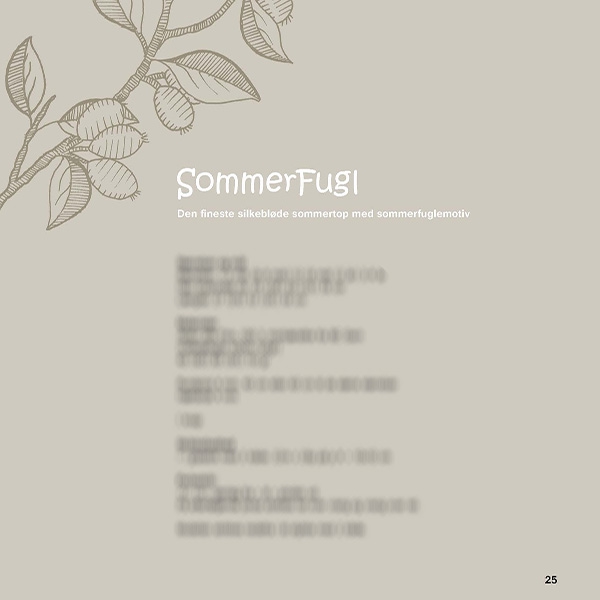 Ninette har de sidste par år designet til forskellige garnfirmaer og til magasiner. Nu har hun samlet 8 modeller til dette fine hæfte. Modellerne er bygget op i et enkelt snit med variation i strukturer, strikkeretninger og faconer. Ved alle modeller er der tænkt, at der skulle være et minimum af monteringsarbejde. Garnforbruget er BC Garn, Filcolana, Onion, Permin og Sandnes Garn.