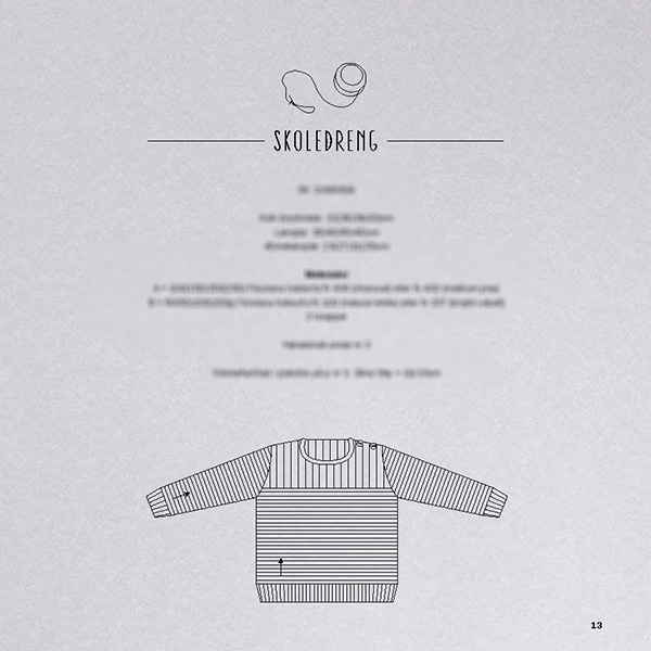 Der er skønne trøjer og sweatre, en kjole, en hue og en sej “arbejdsjakke”. Modellerne er vist i to farvekombinationer og de fleste kan strikkes til både drenge og piger.