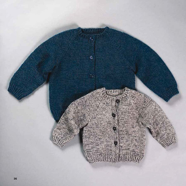 Der er skønne trøjer og sweatre, en kjole, en hue og en sej “arbejdsjakke”. Modellerne er vist i to farvekombinationer og de fleste kan strikkes til både drenge og piger.